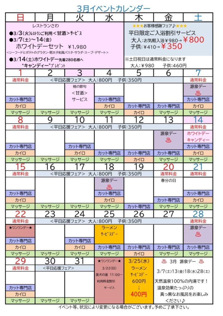 春めいてくる3月のイベントをご案内いたします。